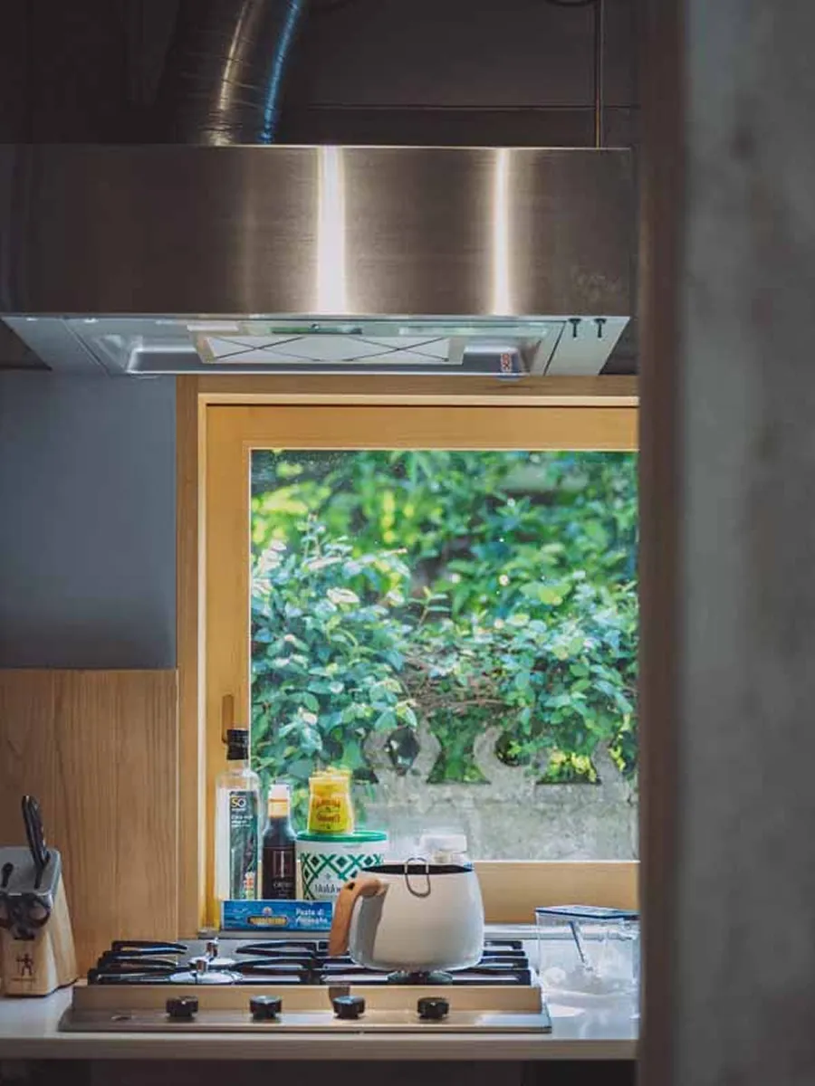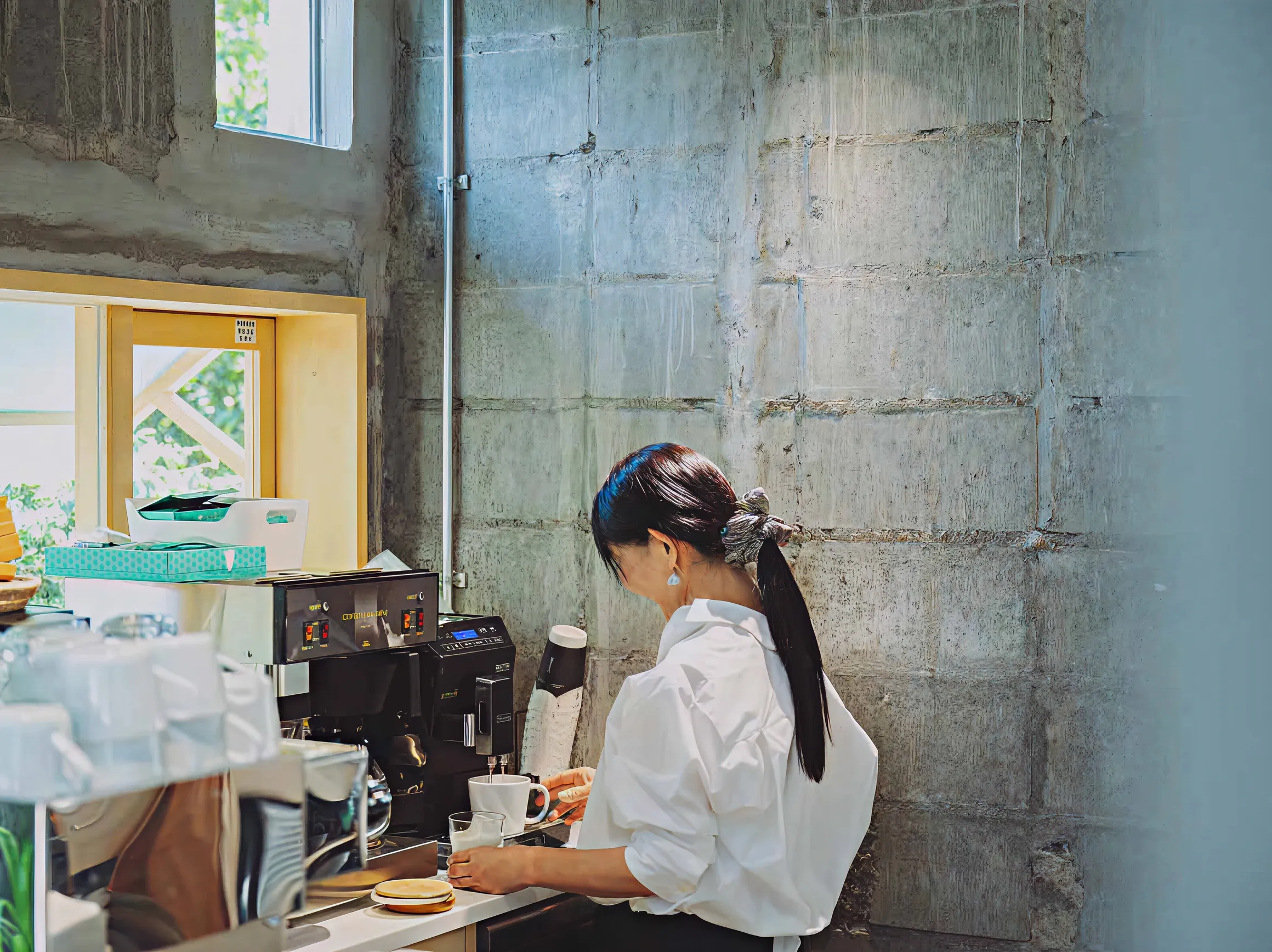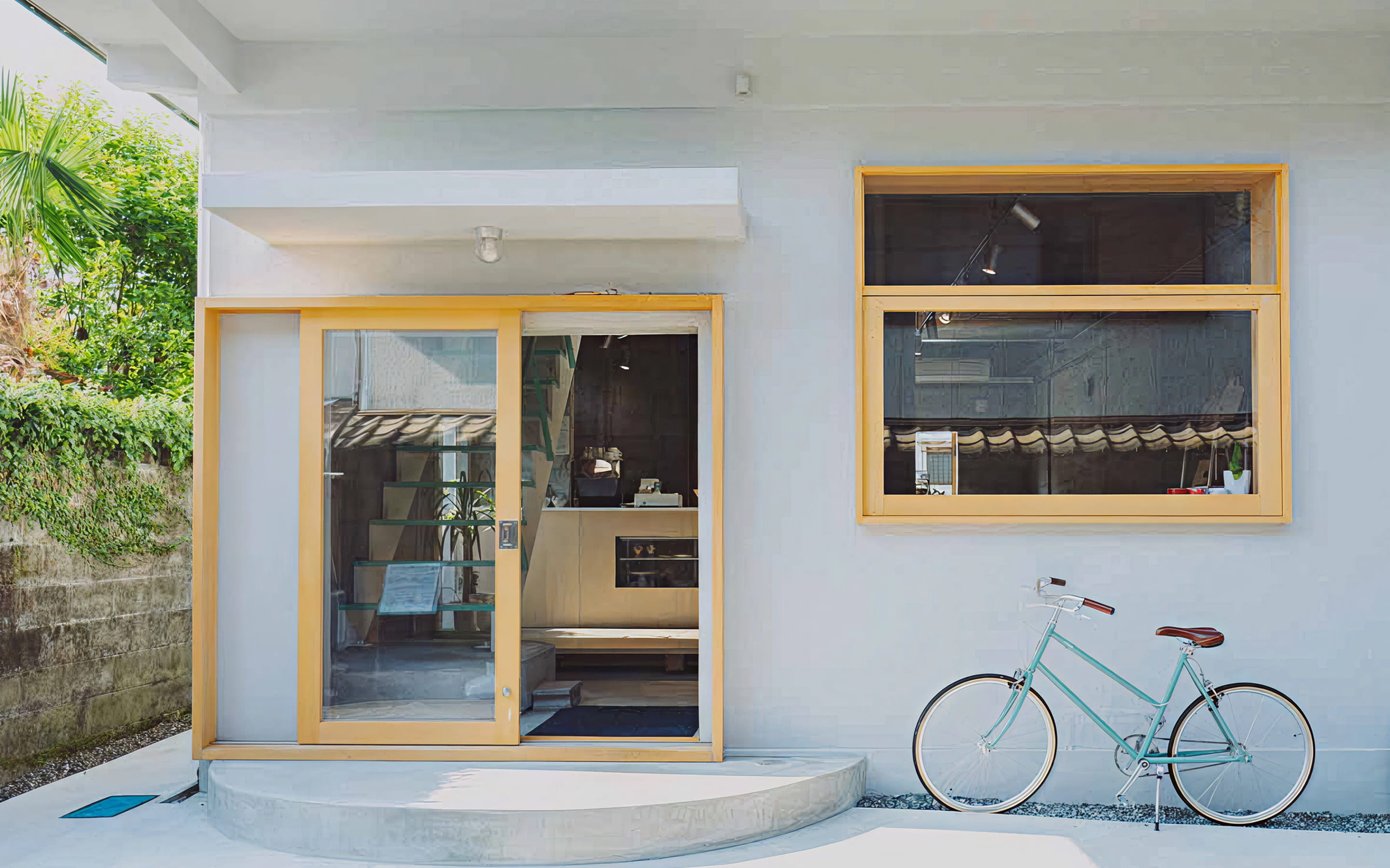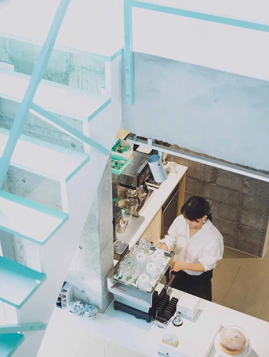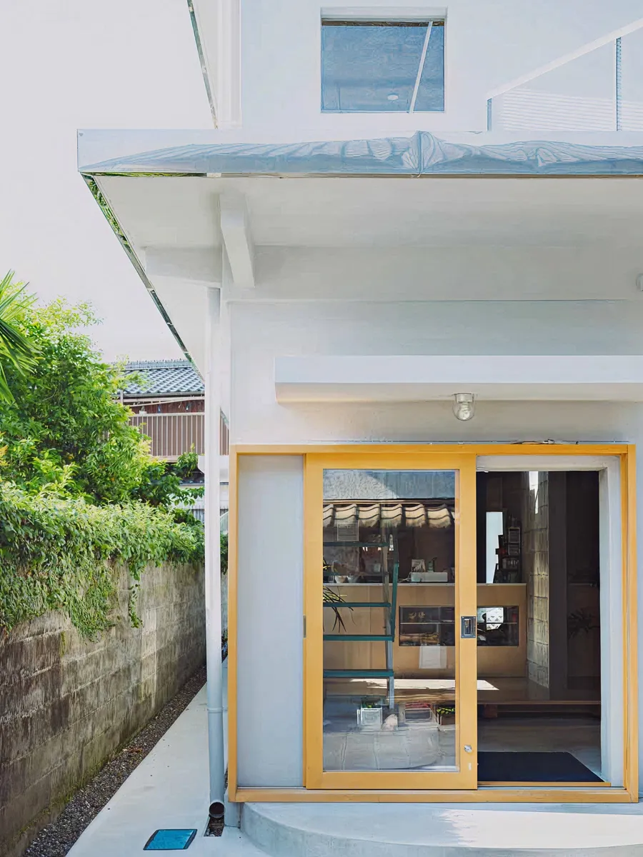 建築設計は、店主たっての希望で建築家・矢橋徹さんに依頼。元の建物を生かし、港町の風景になじむように整えました。中(地元)の人と、外(旅)の人が、自然にまざり合う光景を思い描いてつくられた空間は、まるで光と風のあそび場。ふらりと旅の途中で立ち寄る人も、日常のなかで、ほっと一息つきたい地元の人も。誰にとってもひらかれた、まちの休憩所のようなカフェでありたいと思っています。